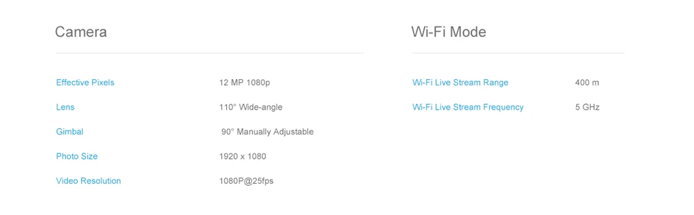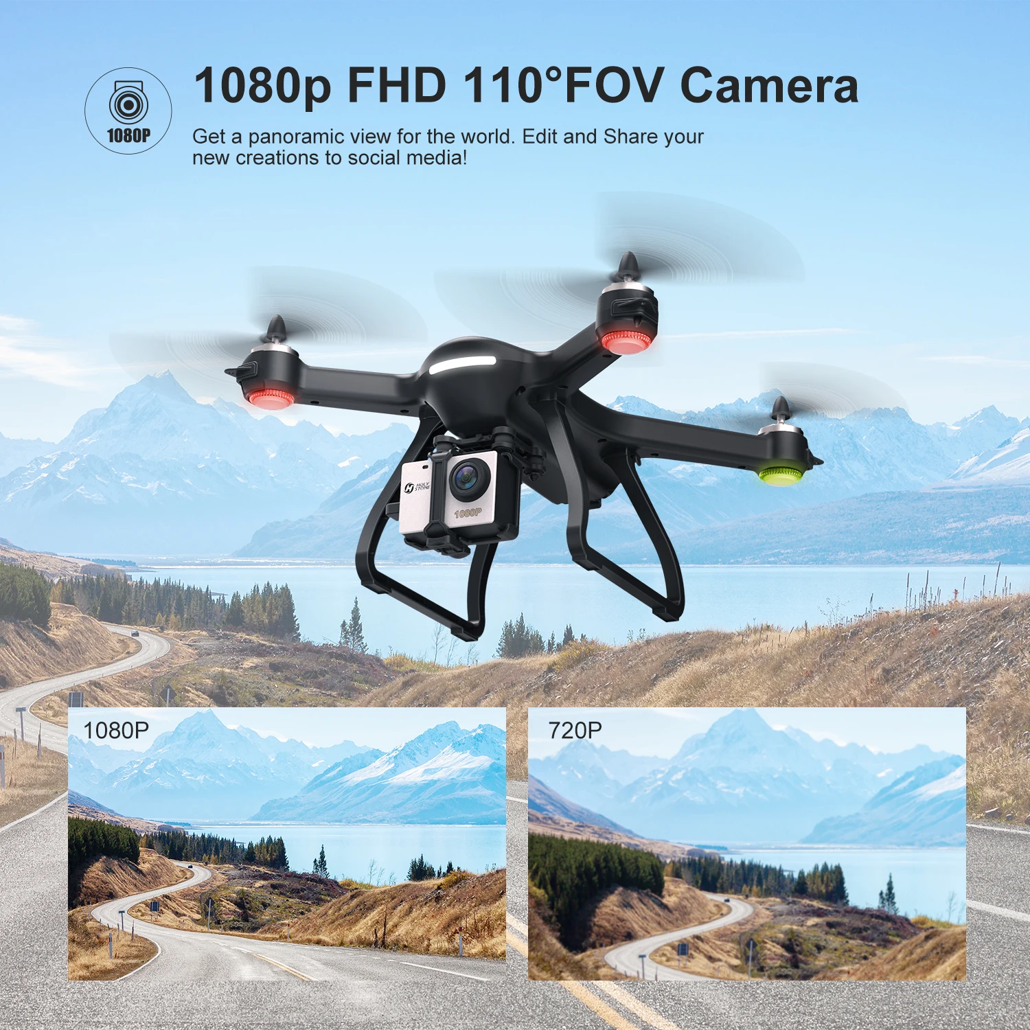The upgraded camera with 110degFOV (field of view) lens gives a panoramic view for recording your unforgettable moment. 5G 1300FT transmission ensures high-quality real time video – ideals for selfie. GoPro Hero 2/3/4 Compatible!