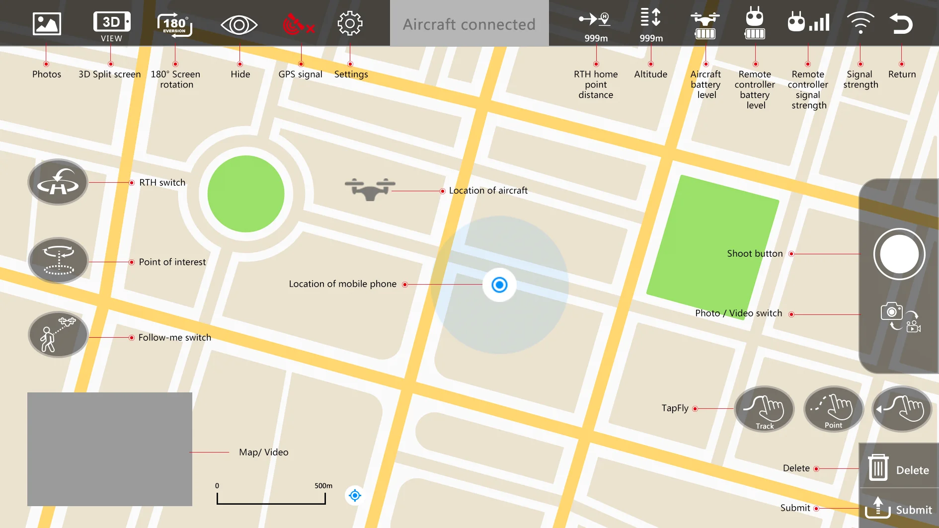 HS700 can always fly back to Take-off Point as per your instruction or whenever it run out of power or loses connection, even when you accidentally fly it out of range.