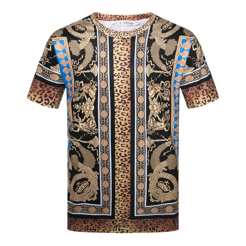 Vintage Baroque T-shirt Men Harajuku 3d Black Gold Leopard Luxury Print Oversize T shirt Summer Streetwear Hip Hop Mens Clothing