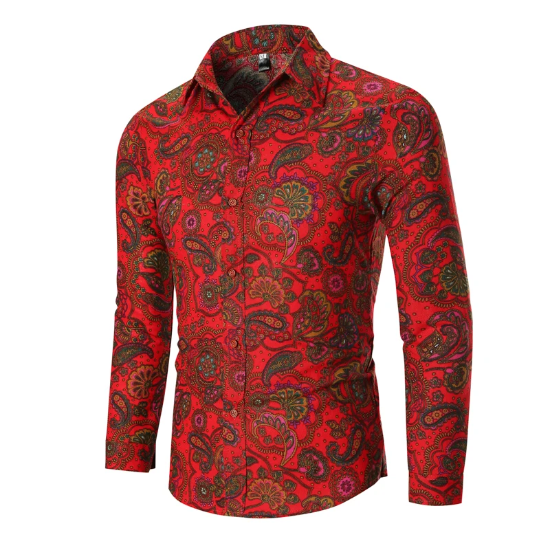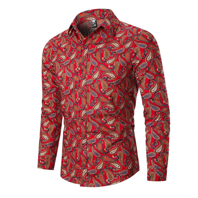 Vintage Paisley Print Hawaiian Shirt Men 2018 Autumn New Long Sleeve Mens Dress Shirts Wedding Party Prom Shirt Chemise Homme
