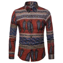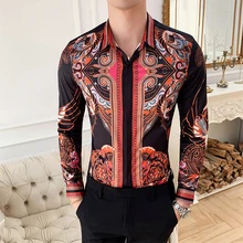 Vintage Paisley Print Hawaiian Shirt Men 2019 Autumn New Long Sleeve Mens Dress Shirts Wedding Party Prom Shirt Chemise Homme