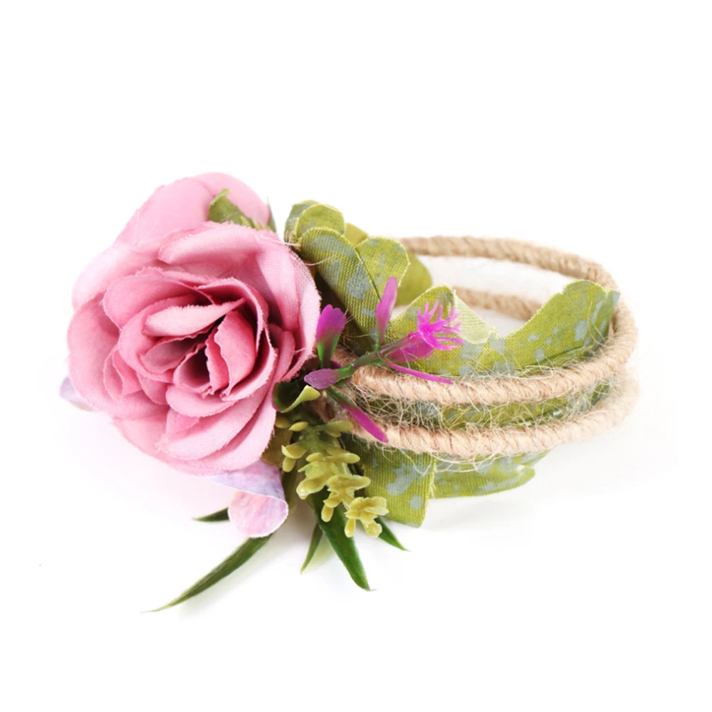 Wedding Bridesmaid Bride Wrist Corsage Woodland Corsage Woven Straw Cuff Bracelet for Wedding Prom Accessories