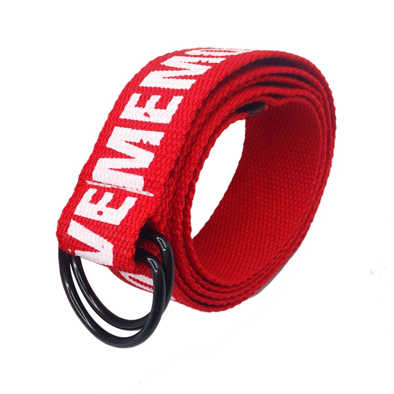 Women Harajuku Belt Red Letter Printed Fashion Unisex Double D Ring Canvas Strap Female Long Belts For Jeans |